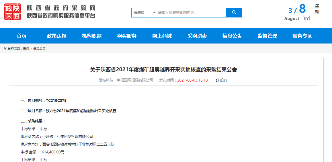 • 2024-05-30喜訊!公司成功中標(biāo) “陜西省2024年度煤礦超層越界開采實(shí)地核查采購項(xiàng)目”合同包2